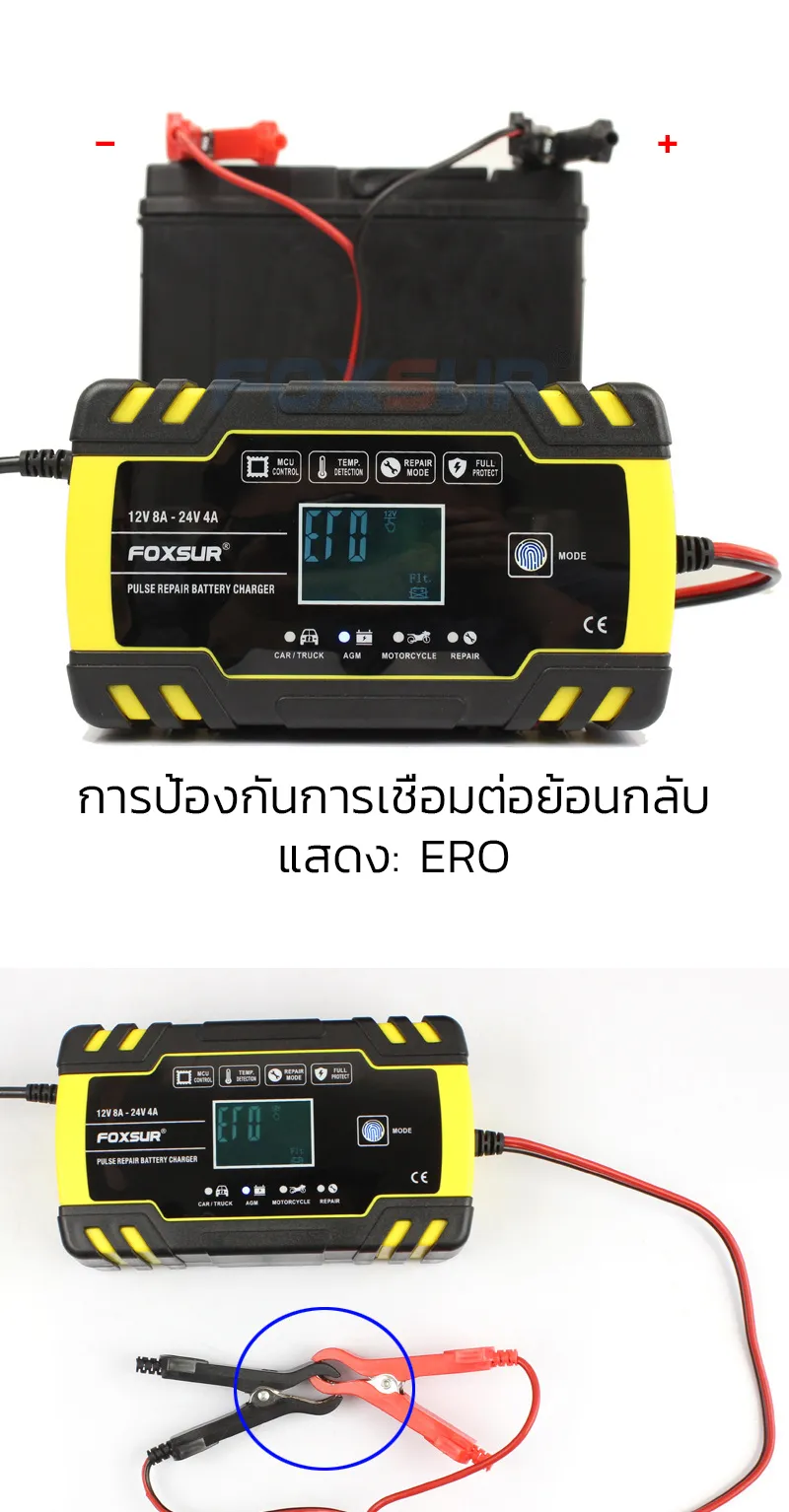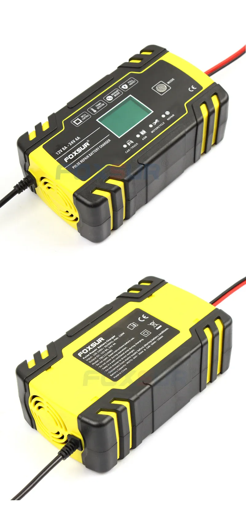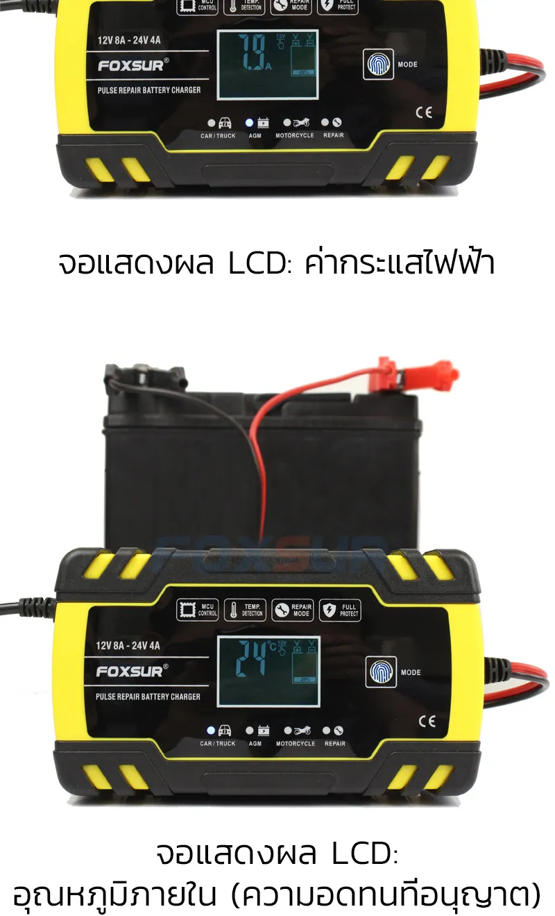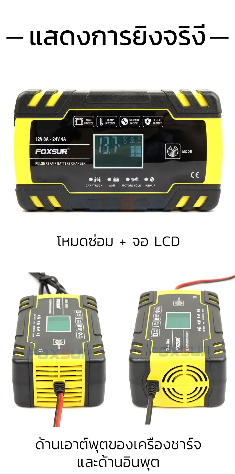 FOXSUR FBC122408D Car Battery Charger เครื่องชาร์จแบตเตอรี่อัจฉริยะ Pulse Repair Charger เครื่องชาร์จแบตเตอรี่ 12V 24V เครื่องซ่อมแบตเตอรี่ รถยนต์ รถมอเตอร์ไซค์