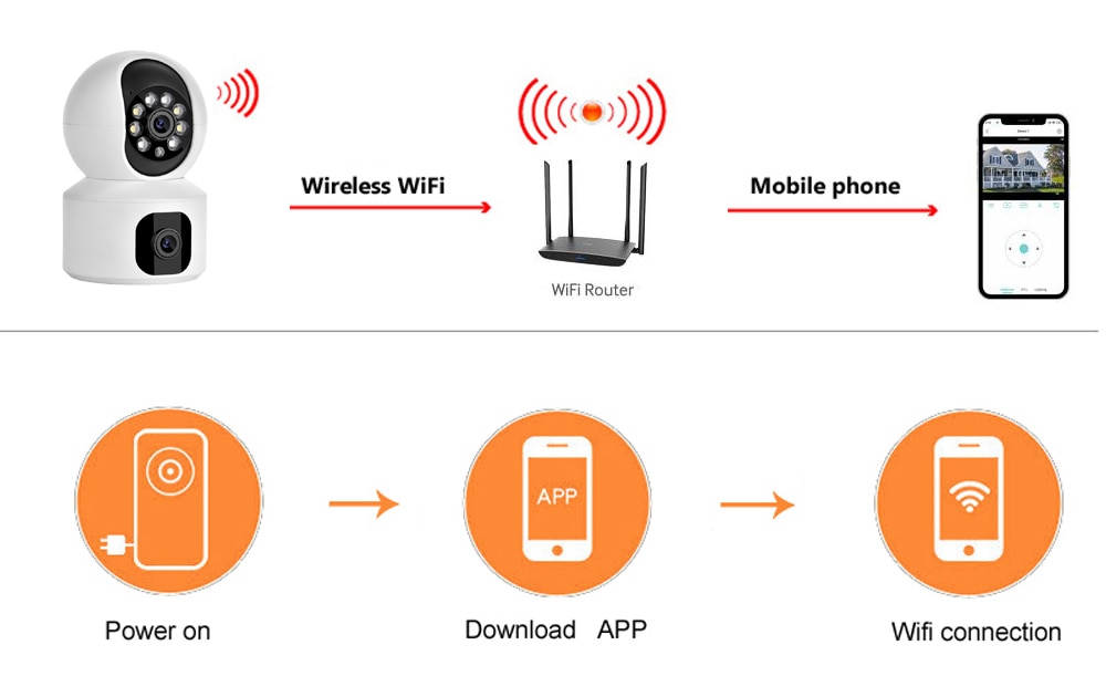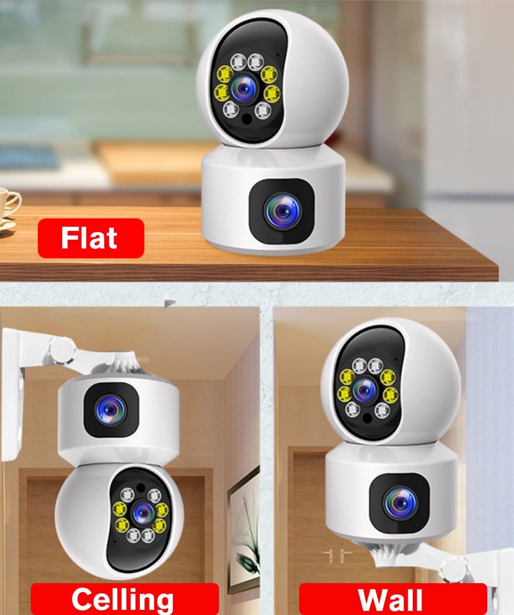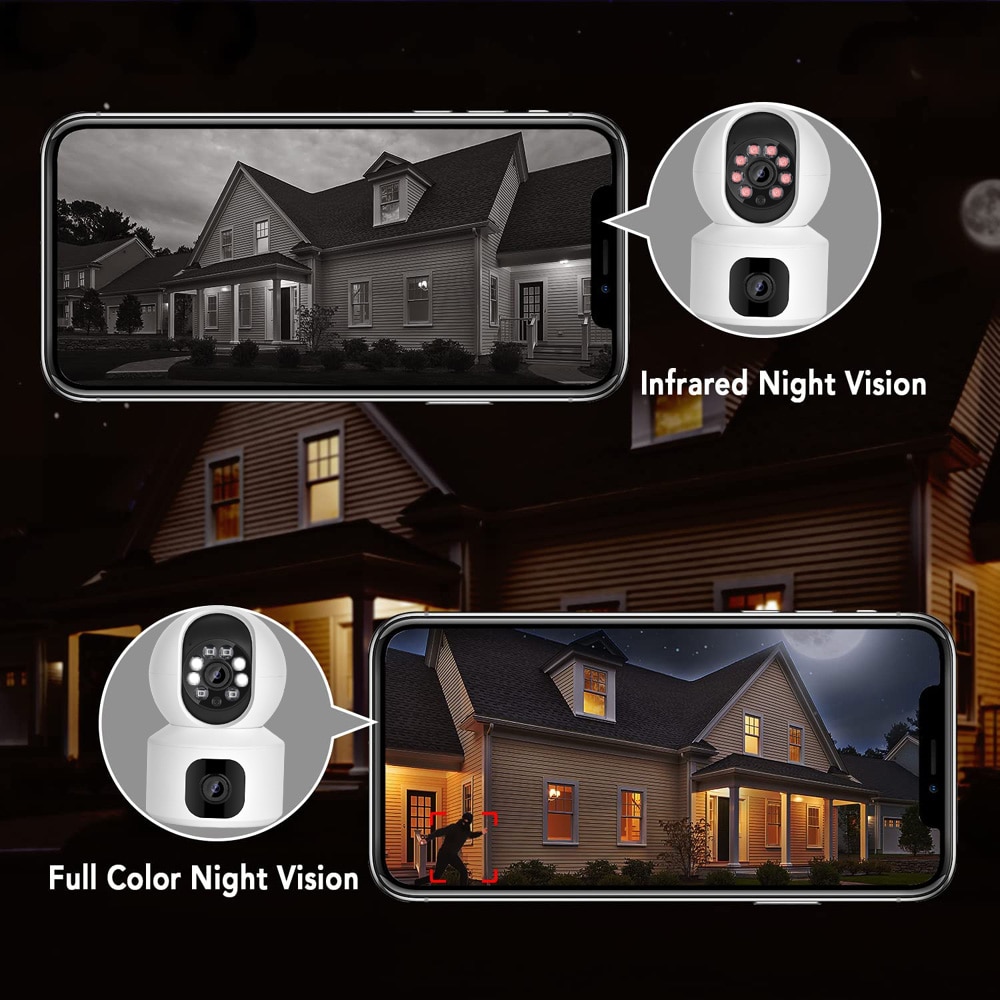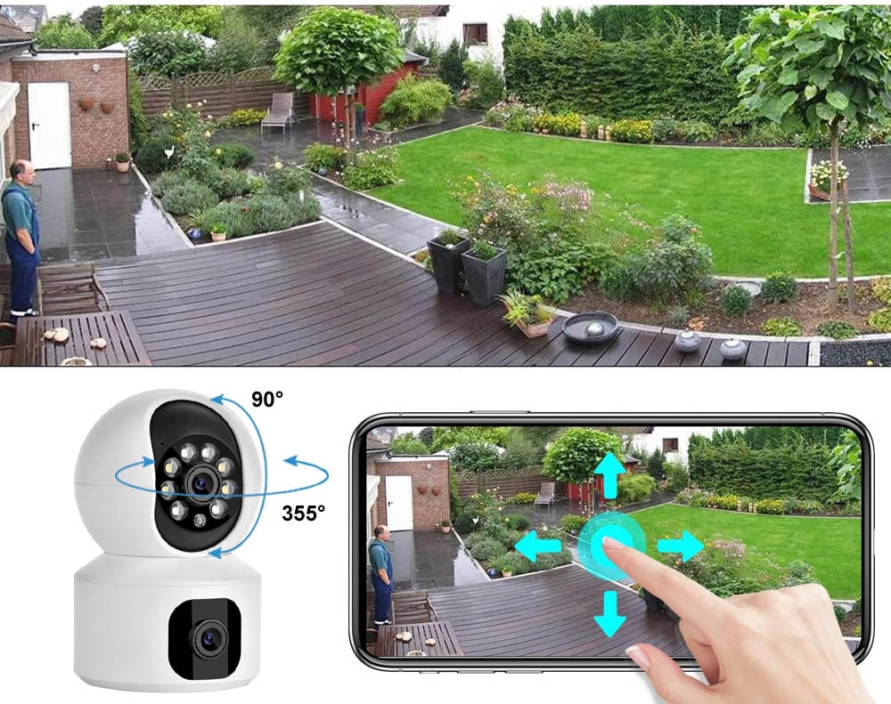 WiFi PTZ กล้องวงจรปิดคุณสมบัติ dual-การออกแบบเลนส์สั้นโฟกัสเลนส์และเลนส์กล้องโทรศัพท์, ช่วยให้ Dual การเชื่อมต่อหน้าจอ360 ° PTZ ดูใน App.